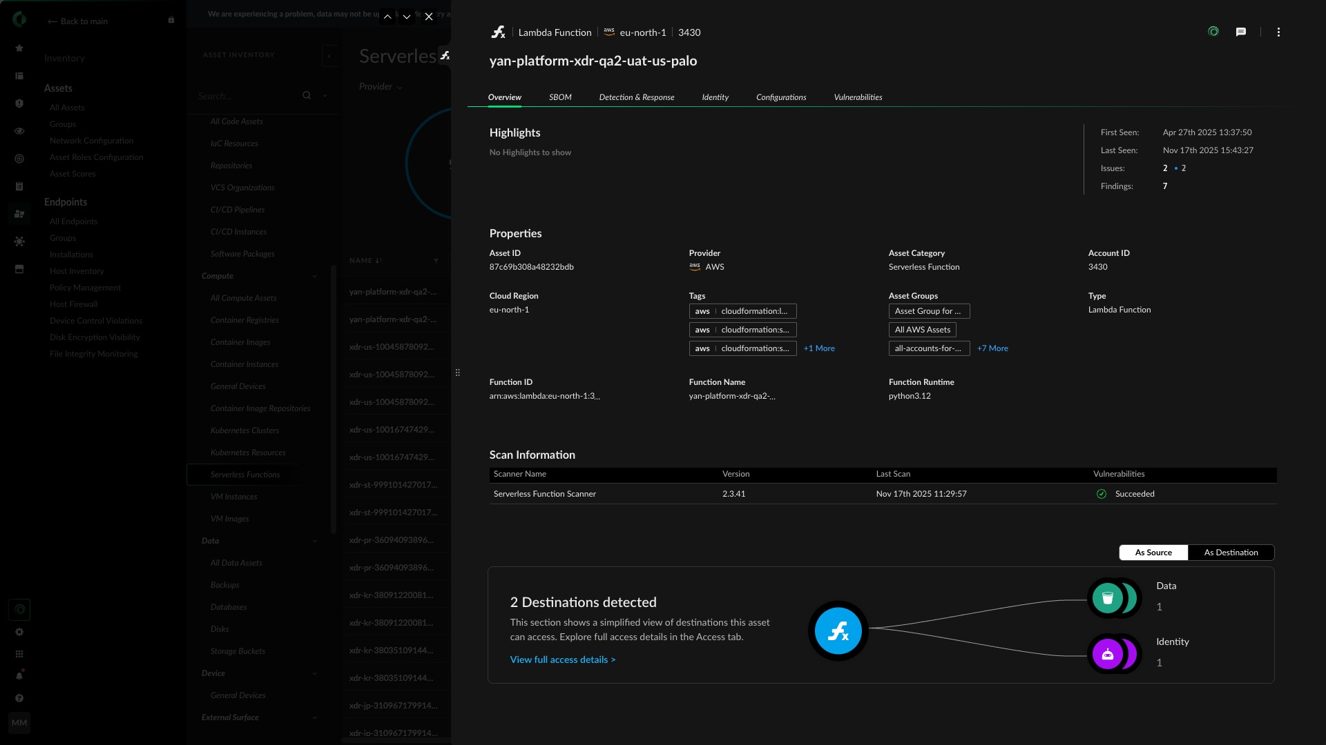 지속적인 스캔을 통해 클라우드 환경에서 실행 중인 기능을 식별하고 보호하세요.