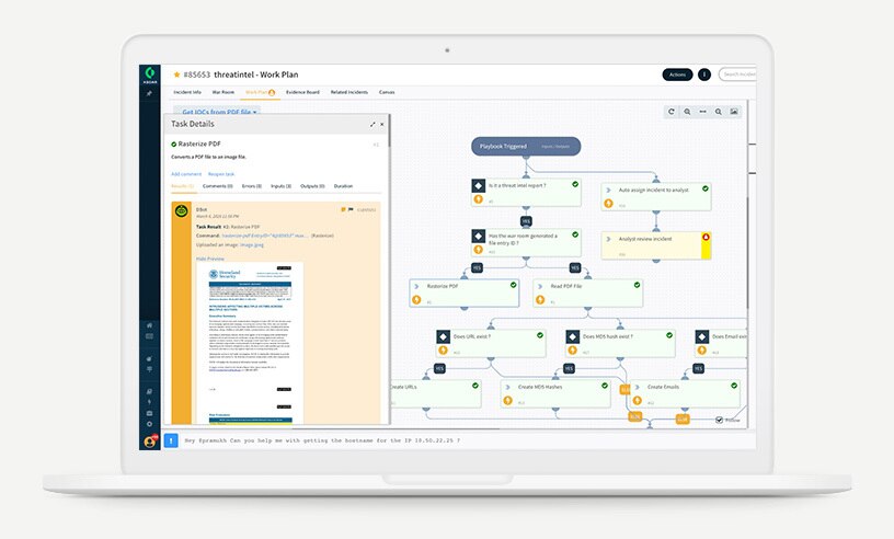 보안 오케스트레이션, 자동화 및 대응(SOAR) 기능은 플레이북 기반 자동화를 사용하여 사례 관리, 프로세스 자동화, 위협 인텔리전스를 결합합니다.